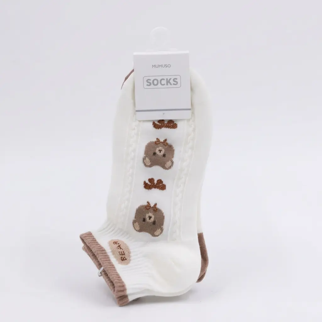 Sneakersocken Damen aus Baumwollmischung mit Bären-Design (Weiß/Braun)