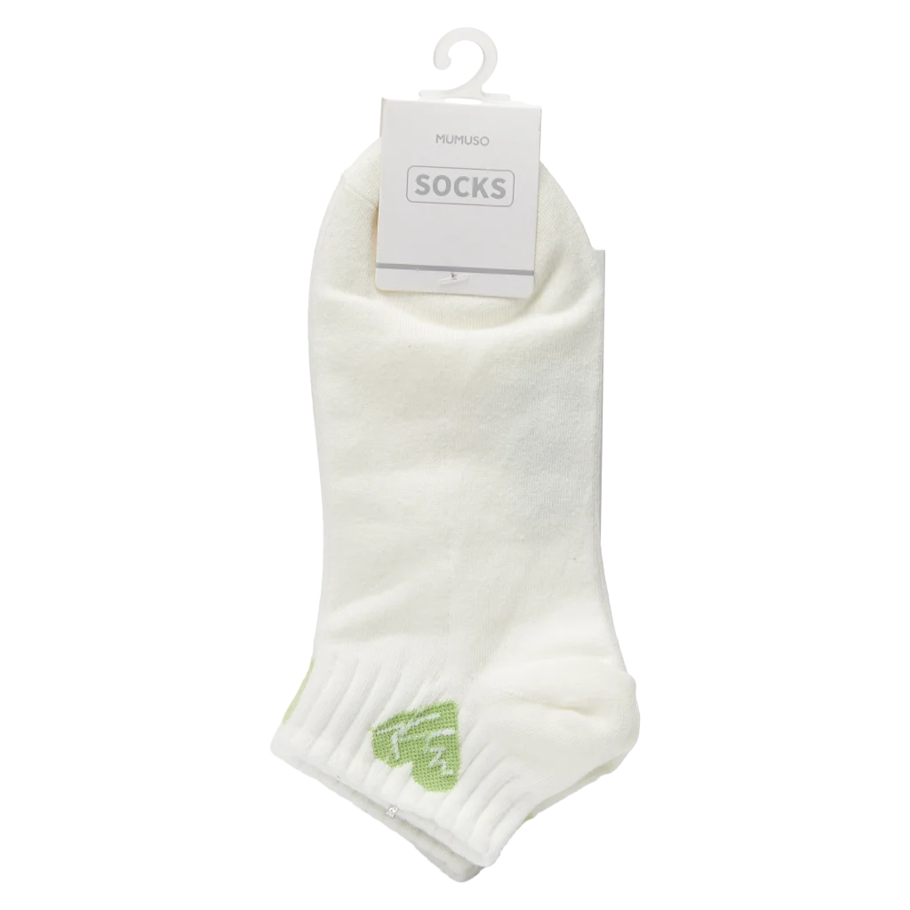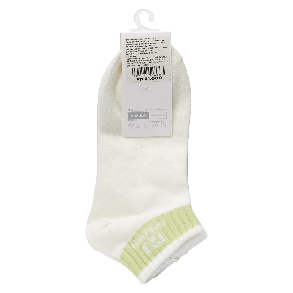 Die Socken bestehen aus einer hochwertigen Kombination aus 65% Baumwolle, 30% Polyester und 5% Elasthan, wodurch sie dauerhaft formstabil und weich sind. Das schlichte Design in Weiß mit einem kleinen grünen Akzent am Bündchen passt zu jedem Outfit und ist dezent gehalten.
