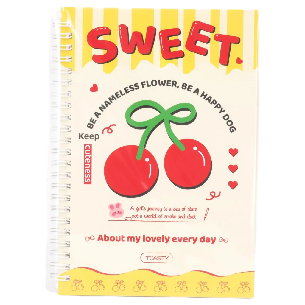 Das Spiral-Notizbuch A5 mit Kirsch-Design ist ideal für Schule, Studium oder den Alltag. Die stabile Spiralbindung und das farbenfrohe Design (Creme/Rot) machen Notizen übersichtlich und sorgen für gute Laune.