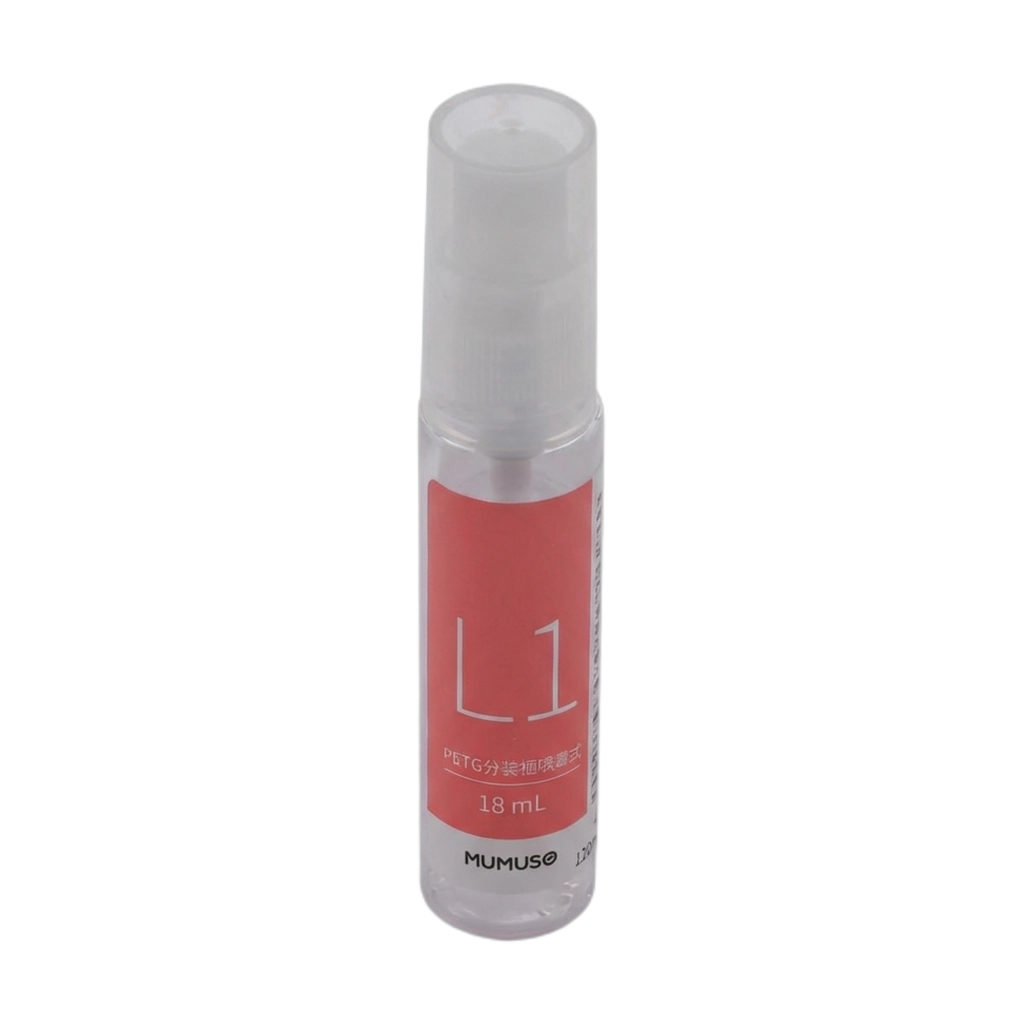 Die transparente Kunststoffflasche mit schlichtem Design und praktischer Verschlusskappe passt bequem in jede Tasche. Durch den kompakten Aufbau und das Fassungsvermögen von 18 ml lässt sich die Flasche leicht transportieren und nachfüllen.