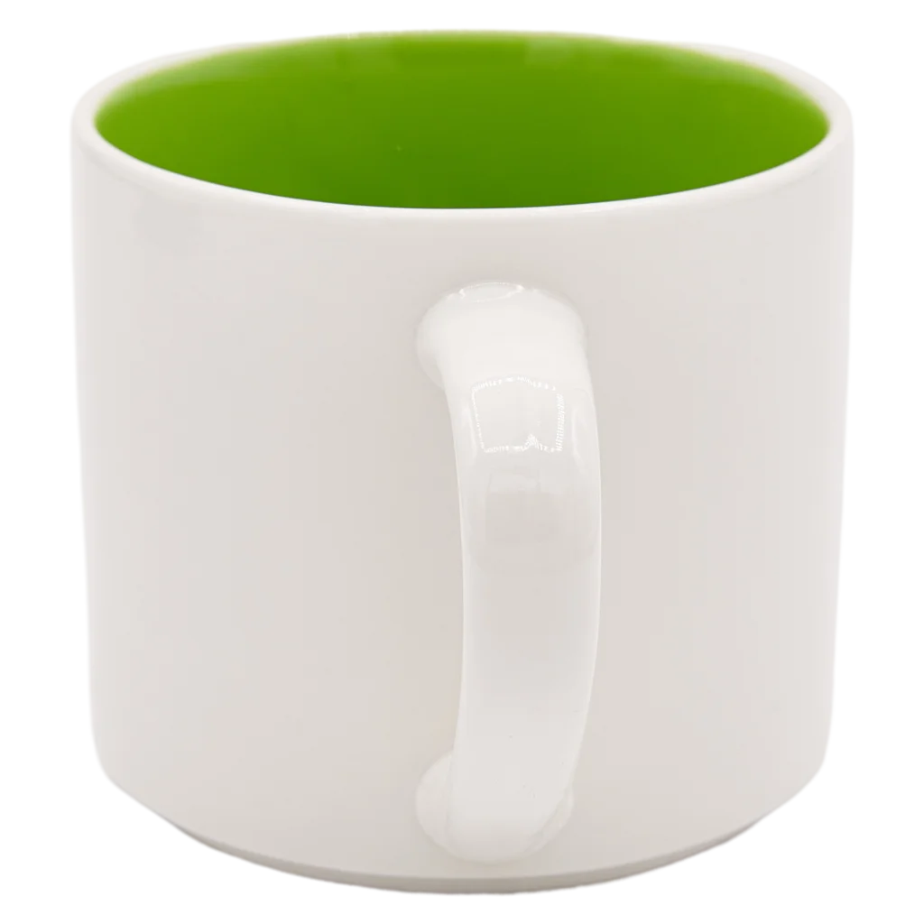 Gefertigt aus hochwertigem Neo-Knochenporzellan und gestaltet in einer Kombination aus schlichter weißer Außenseite mit leuchtend grünem Inneren (Weiß/Grün), hebt sich diese Tasse optisch vom Gewöhnlichen ab. Das stapelbare Design spart Platz im Küchenschrank und sorgt für Ordnung.