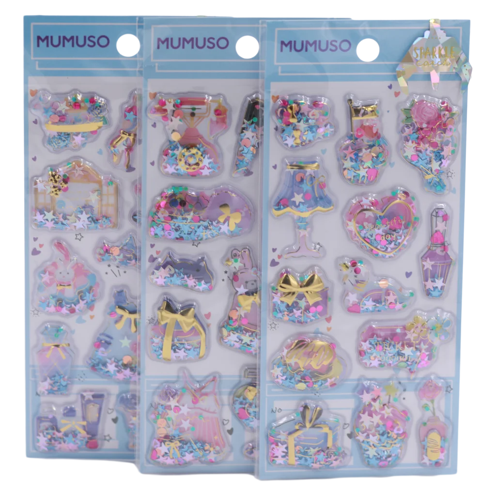 Jeder Sticker ist mit bunten, beweglichen Pailletten gefüllt und verfügt über dekorative Prints in verschiedenen Formen. Gefertigt aus hochwertigem PVC, sorgen sie für einen glitzernden Akzent auf vielen Oberflächen.