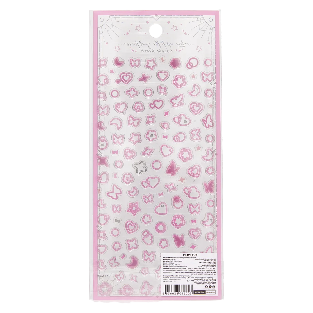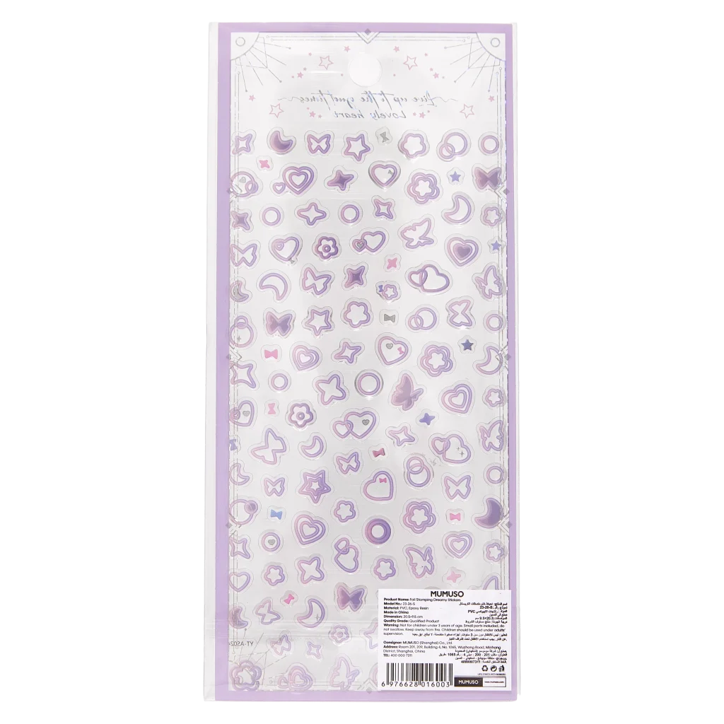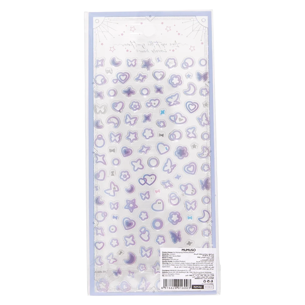 Jedes Sticker-Set präsentiert pastellfarbene Symbole wie Herzen, Sterne und Schleifen auf transparenter Folie. Die Sticker sind in verschiedenen zarten Farbvarianten erhältlich (Rosa/Lila/Blau) und verleihen jedem Projekt eine verspielte Note.