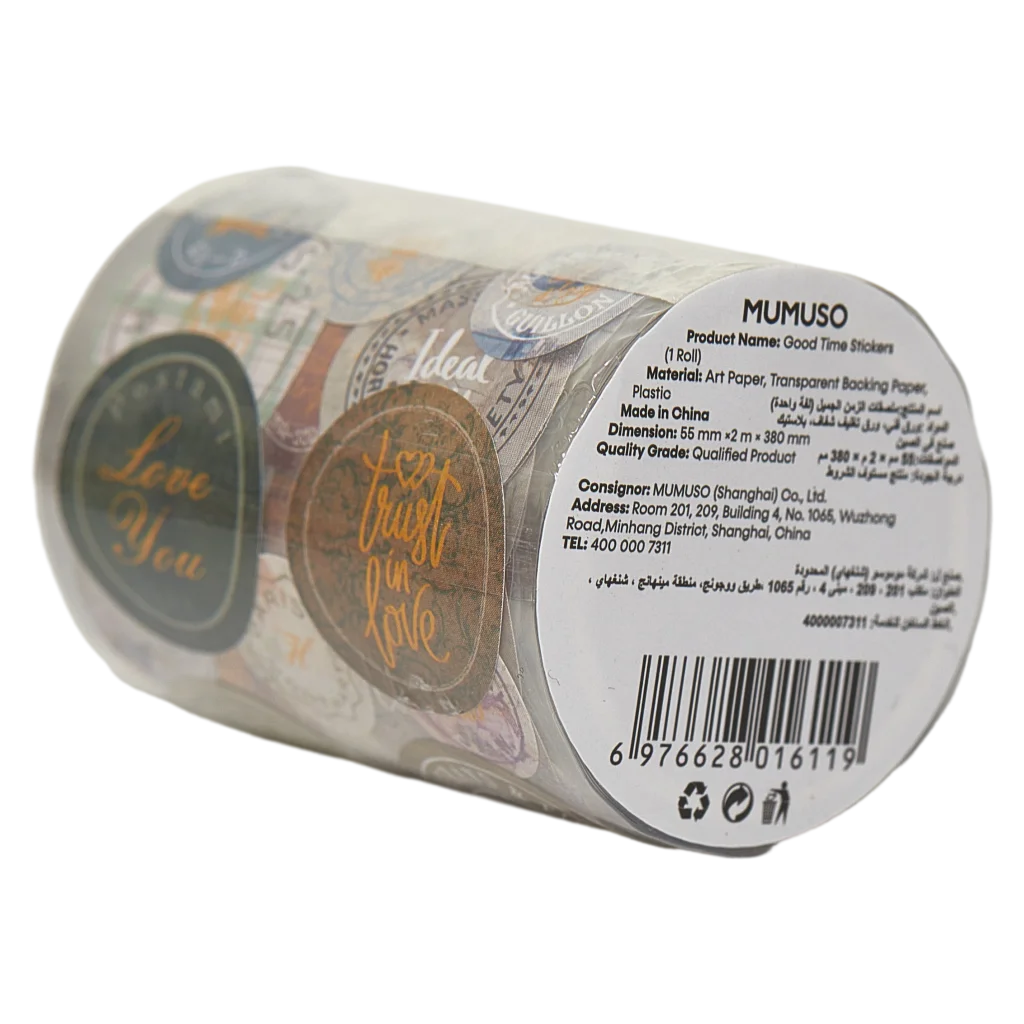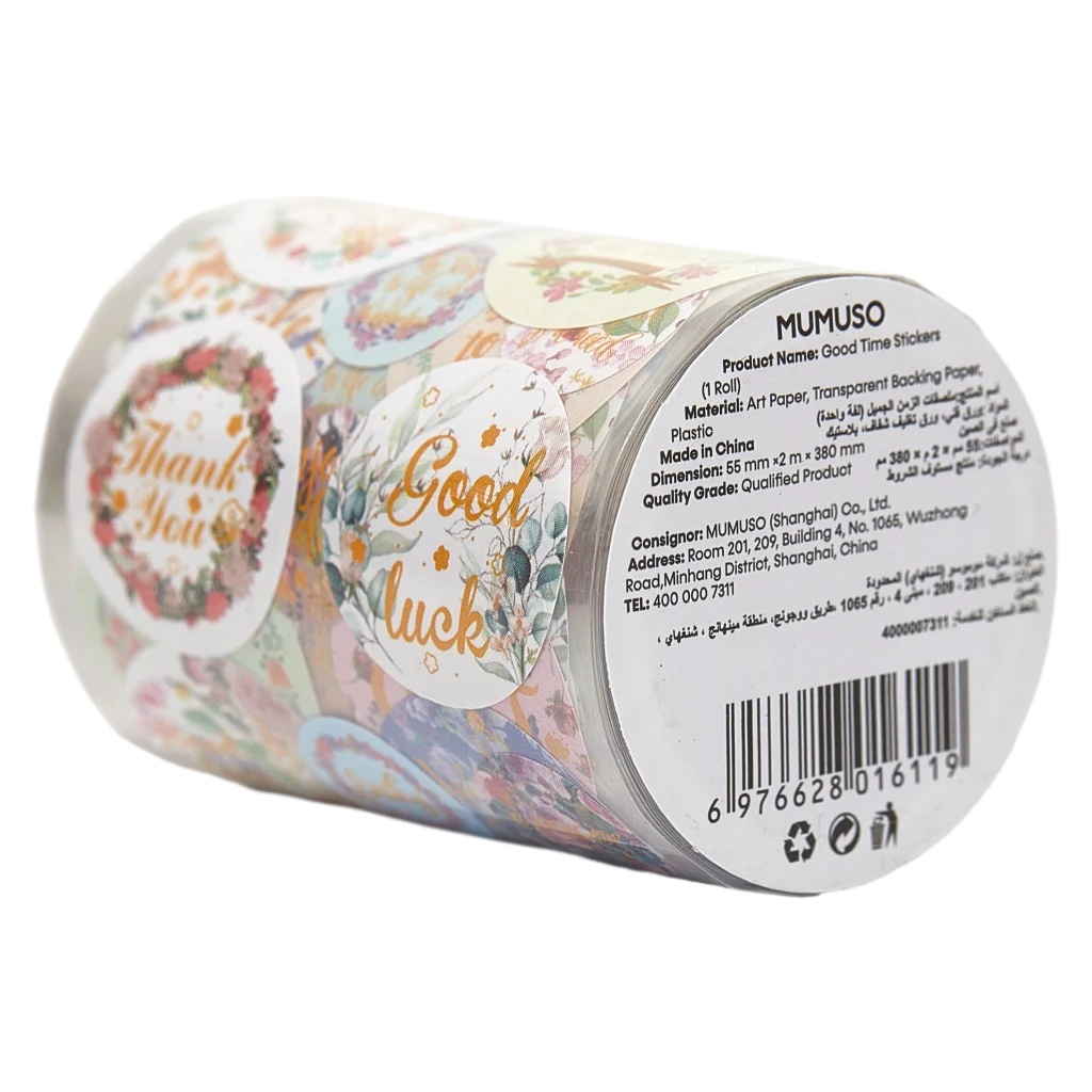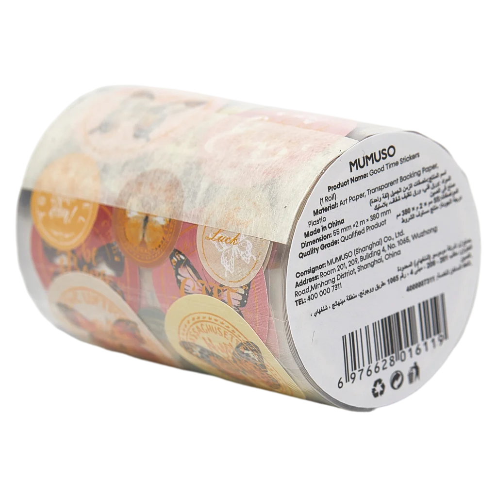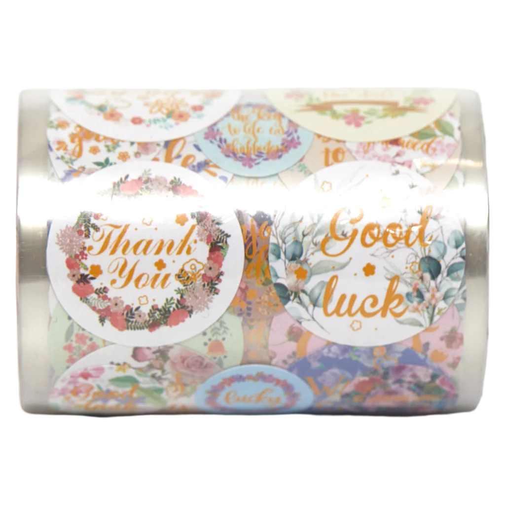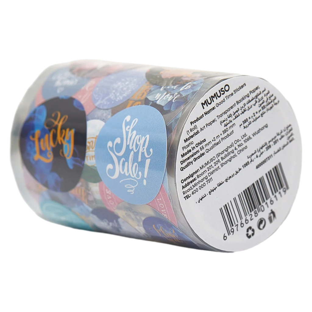 Die Sticker sind auf einer handlichen Rolle angebracht und überzeugen durch unterschiedliche Prints mit Schriftzügen wie “Thank You”, “Good Luck” und “Lucky”. Das Stickerpapier ist farbintensiv bedruckt und lässt sich einfach abziehen und aufbringen.