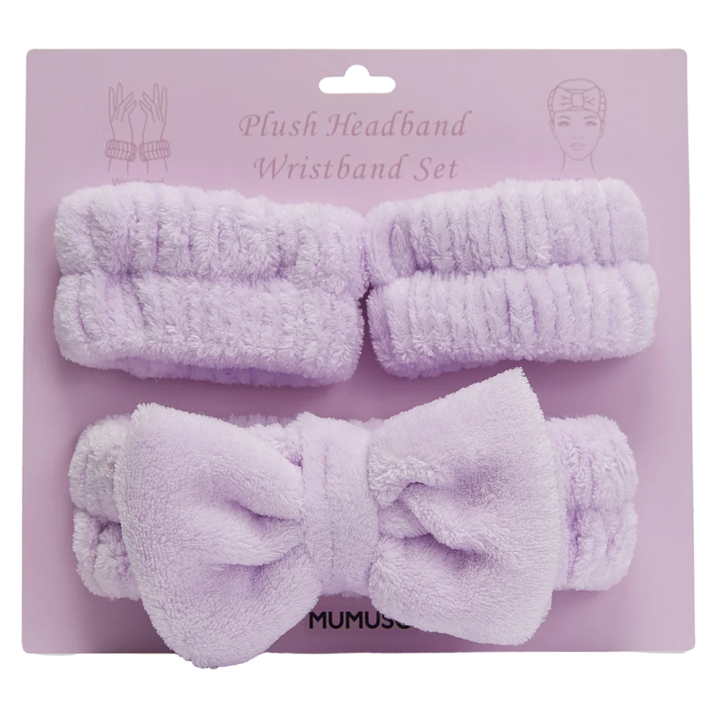 - Stirnband und Armband Set aus Polyester für Gesichtspflege (Lila)