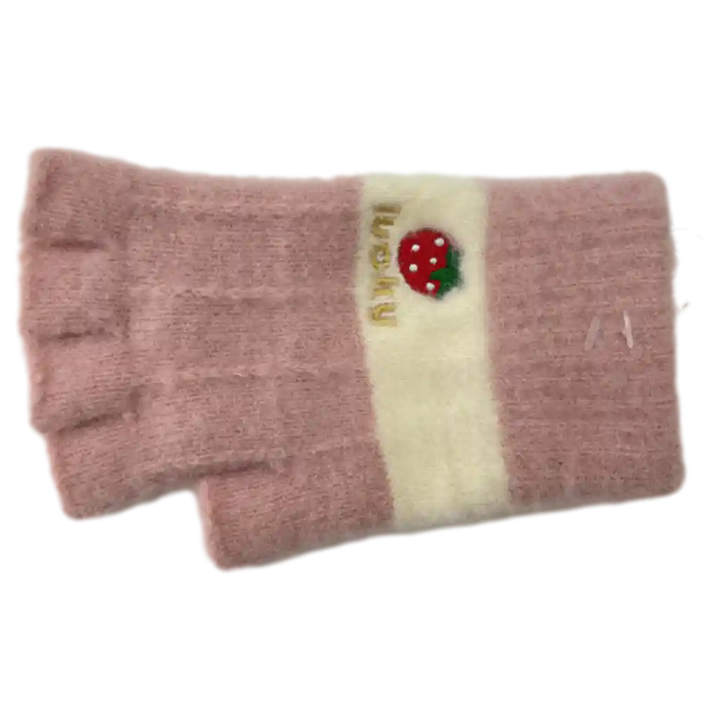 - Strickhandschuhe Damen fingerlos mit Erdbeer-Design (Rosa/Weiß)
