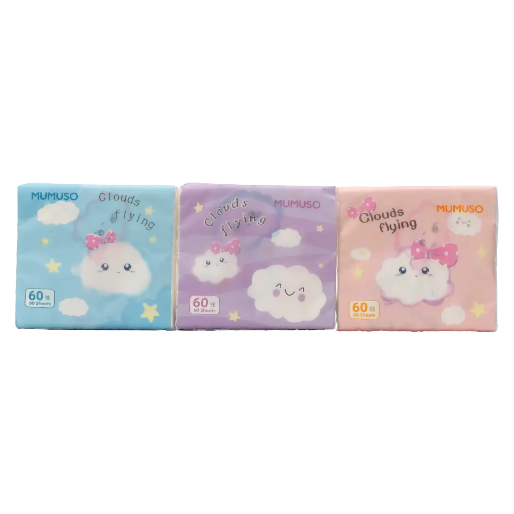 - Taschentücher aus Rohholzpulpe mit Wolken-Design, 60 Blatt (Blau/Lila/Rosa)