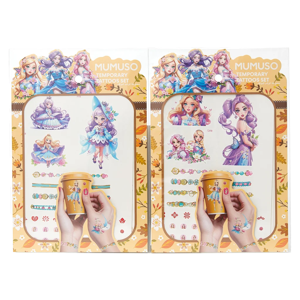 Dieses Set enthält vier Bögen temporäre Tattoos im Blumenfee-Design und sorgt für Abwechslung beim Verzieren von Haut, Handyhüllen oder Papier. Ideal für Kinder, Jugendliche und alle, die ihren Look spielerisch verändern möchten.