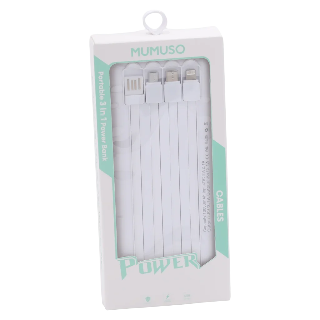 - Tragbare Powerbank mit 3-in-1 Kabeln aus ABS-Kunststoff, 10.000 mAh (Weiß)