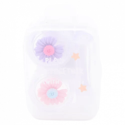 - Tragbarer Kontaktlinsenbehälter mit Blumen-Design (Lila/Rosa)