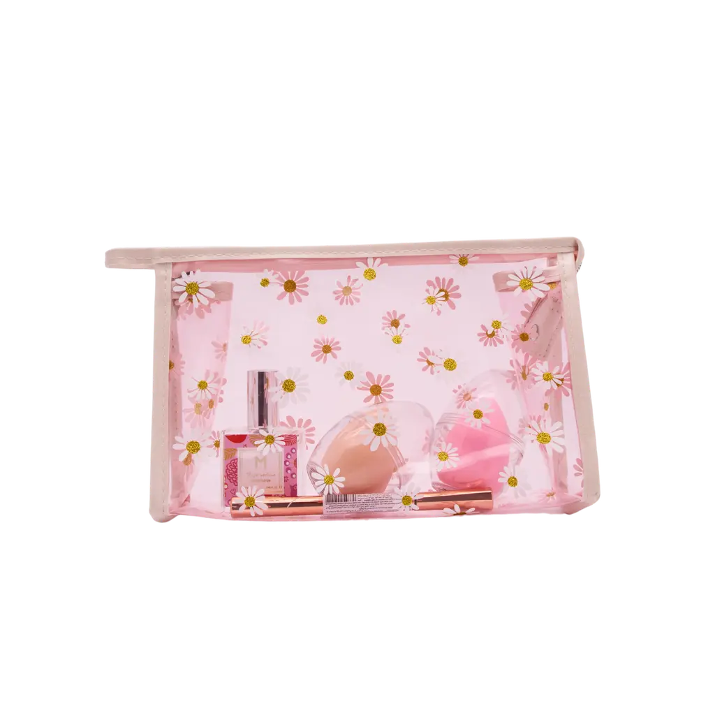 Transparente Kosmetiktasche aus Textil-PVC mit Blumen-Design (Rosa)