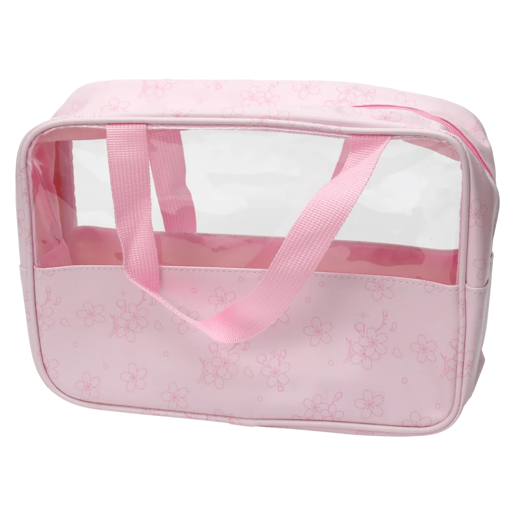 Gefertigt aus widerstandsfähigem PVC, punktet die Tasche durch transparente Seiten und ein dezentes, rosa Kirschblüten-Design. Die hochwertigen Tragegriffe ermöglichen bequemen Transport, während der Reißverschluss die Inhalte sicher verwahrt.