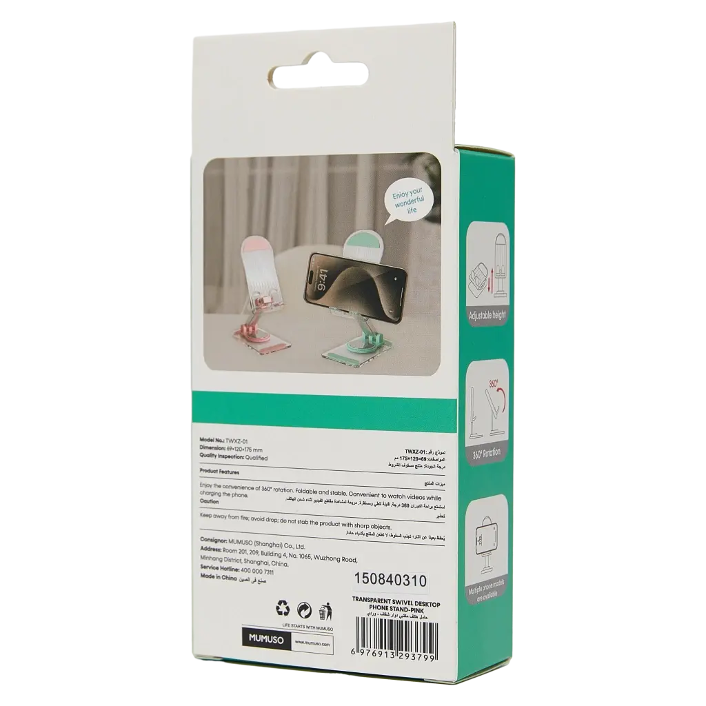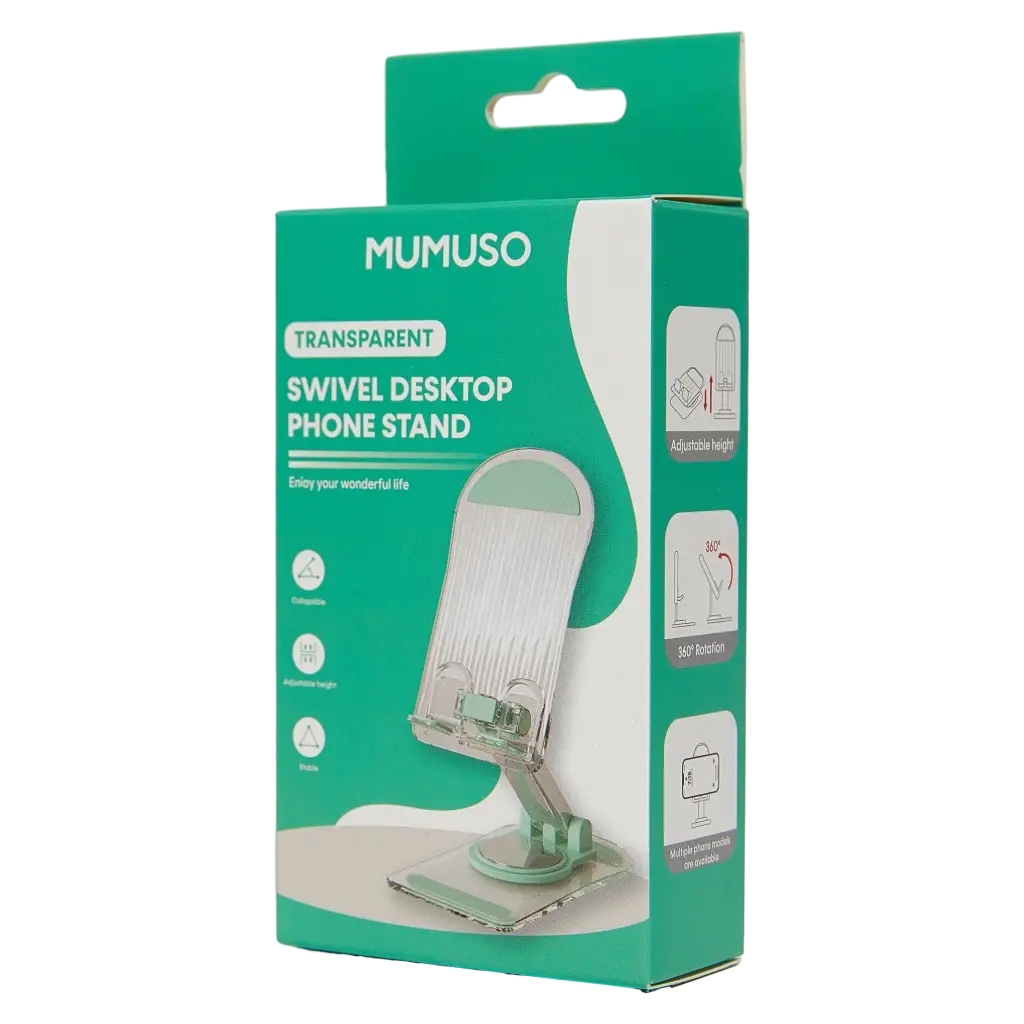 Der transparente Handyhalter für den Schreibtisch ist ideal für Büro und Zuhause. Das drehbare Design ermöglicht flexible Ausrichtung und sorgt für einen stabilen Stand. Perfekt geeignet für Smartphones verschiedener Größen.