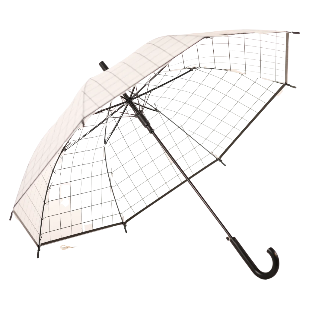 Dieser durchsichtige Regenschirm mit farbigem Raster-Design ist der ideale Begleiter bei Regenwetter, egal ob für Schule, Arbeit oder Freizeit. Dank seines leichten Aufbaus und ergonomischen J-Griffs eignet er sich für Kinder und Erwachsene gleichermaßen.