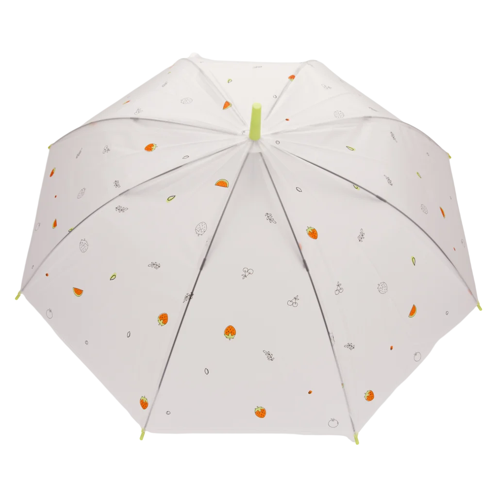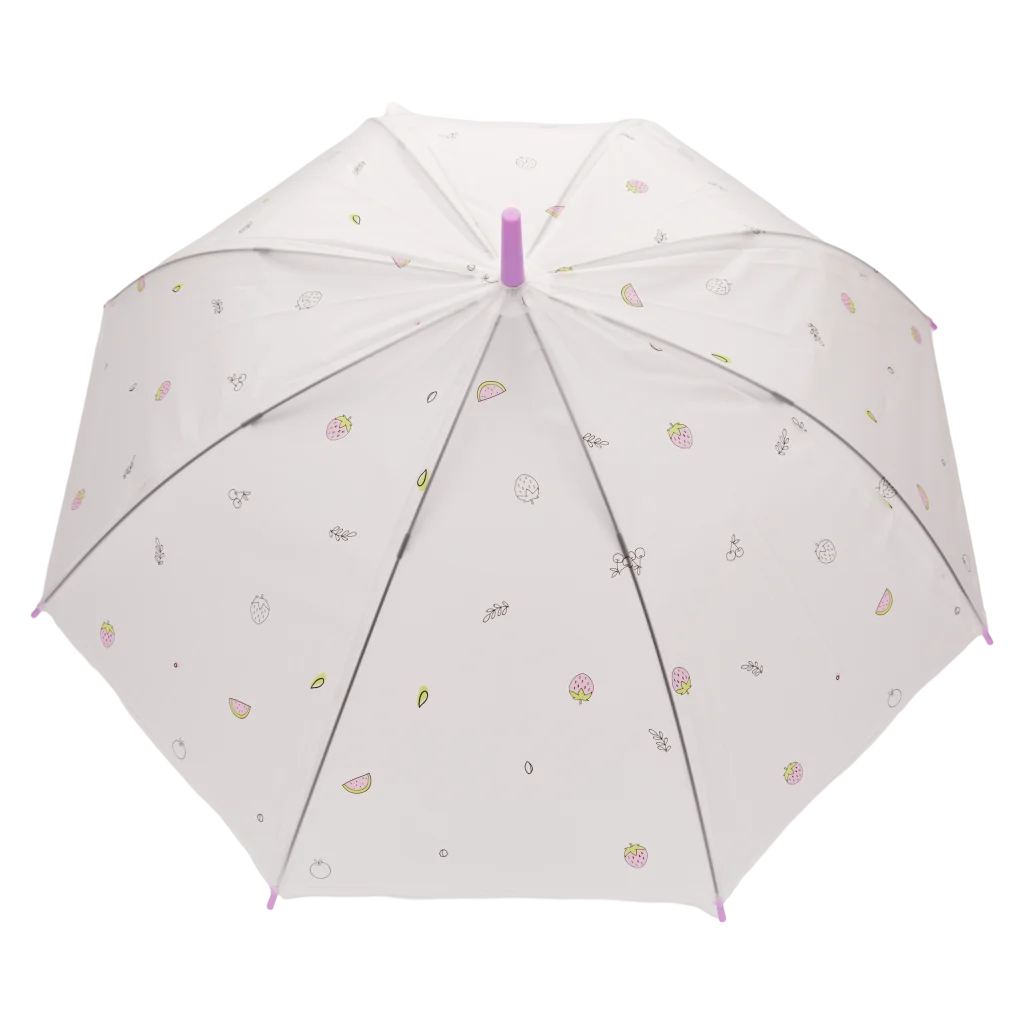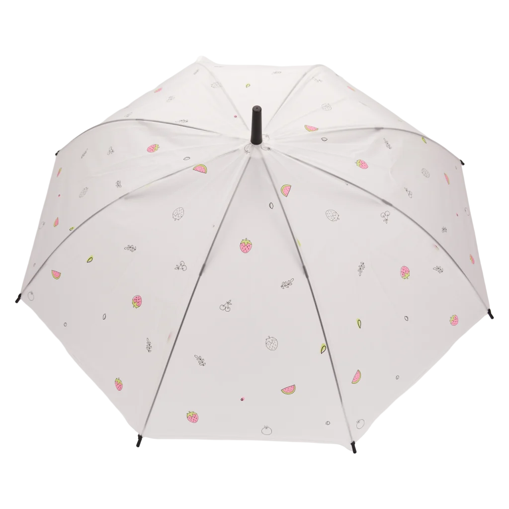 Mit diesem transparenten Regenschirm mit Frucht-Print sind Sie bei jedem Wetter gut geschützt. Das farbenfrohe Design spricht sowohl Kinder als auch Erwachsene an und macht den Schirm zu einem fröhlichen Begleiter im Alltag.