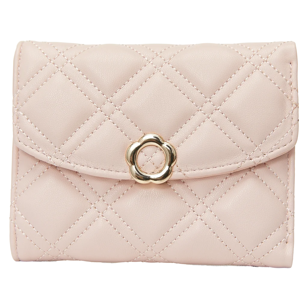 - Tri-Fold Geldbörse aus Kunstleder mit Blumenschließen-Design (Beige)