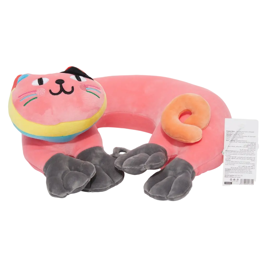 - U-förmiges Nackenkissen aus Polyester mit Katzen-Design (Pink)