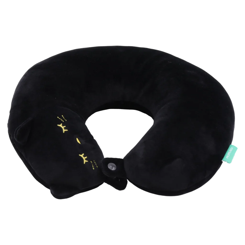 U-förmiges Nackenkissen aus Polyester mit Katzen-Design (Schwarz)