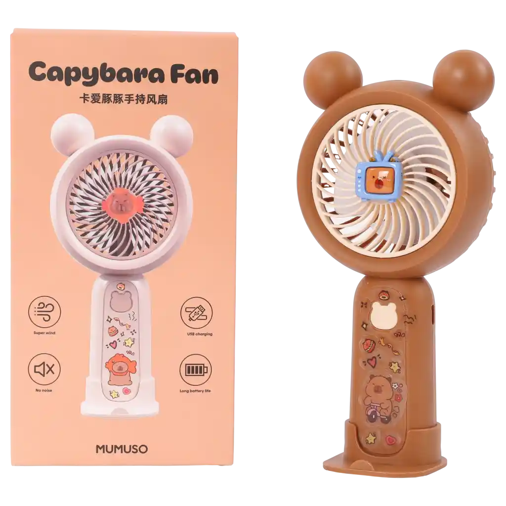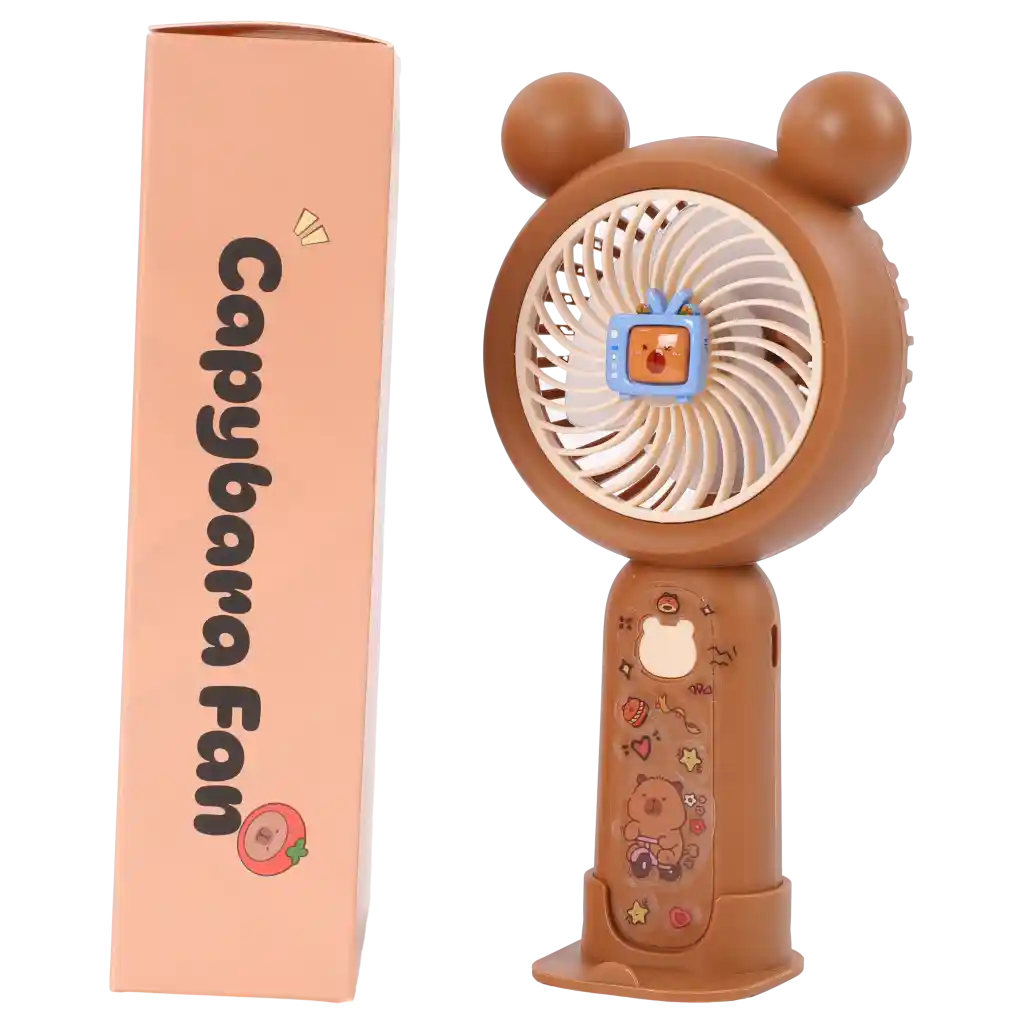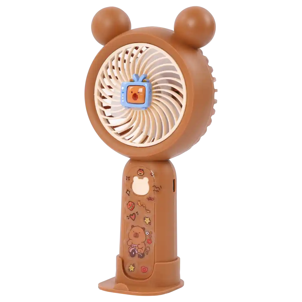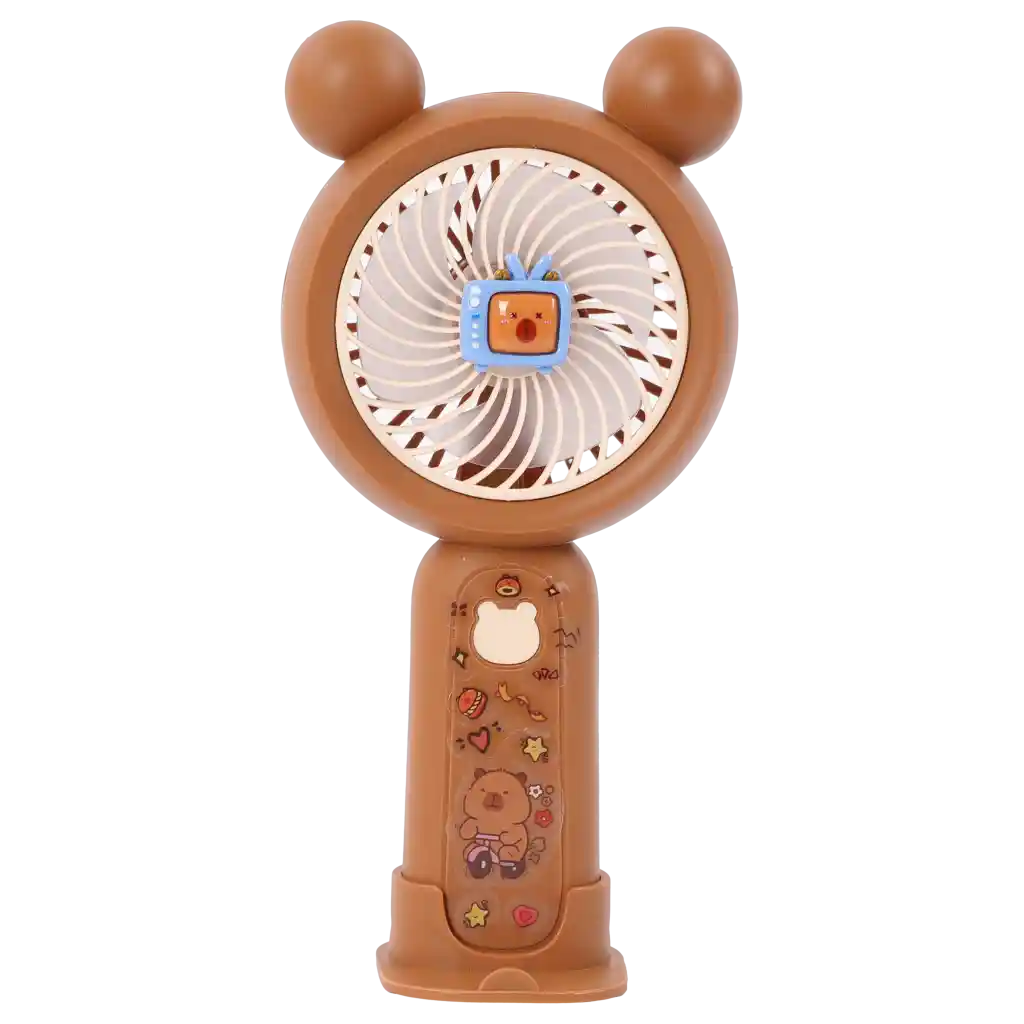 USB-Handventilator aus Kunststoff mit Capybara-Design, wiederaufladbar (Braun)