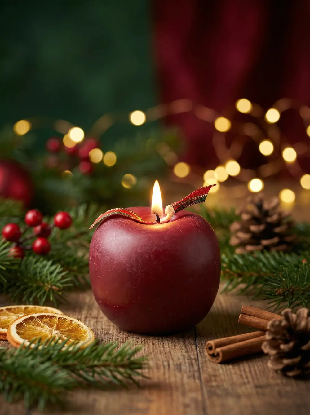 Dekoratives Design: Die Apfelform macht die Kerze zu einem echten Blickfang in jeder Weihnachtsdekoration.