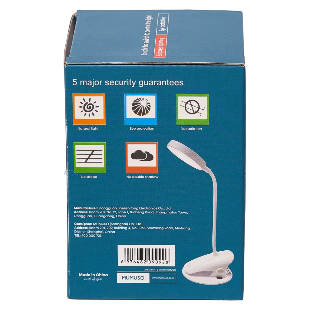 Diese wiederaufladbare Clip-on-Tischlampe sorgt für individuell einstellbares Licht am Arbeitsplatz, im Schlafzimmer oder überall dort, wo flexible Beleuchtung gefragt ist. Dank praktischer Clip-Befestigung ist sie vielseitig einsetzbar und sowohl für Erwachsene als auch für Jugendliche geeignet.