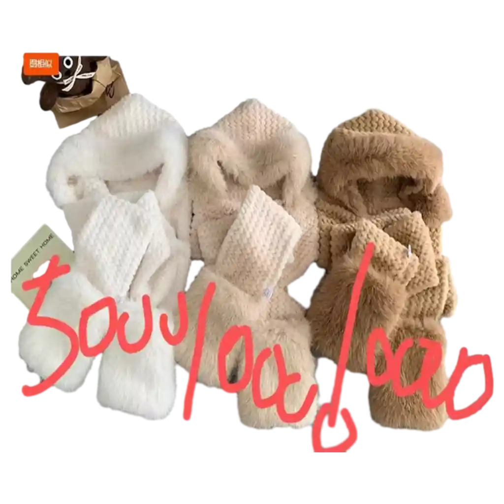 - Winterschal mit Kunstfellbesatz für Damen (Weiß/Beige/Braun), weich und dick gefüttert