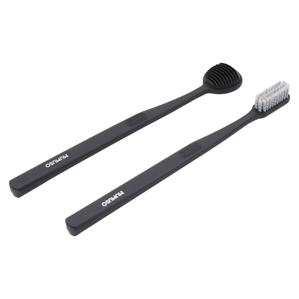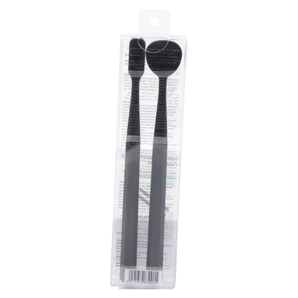 Gefertigt in elegantem Schwarz, passt das Set in jedes moderne Badezimmer. Die Borsten der Zahnbürste sind weich und spiralförmig angeordnet, während der Zungenreiniger gezielt Rückstände beseitigt. Beide Hilfsmittel liegen angenehm in der Hand und lassen sich leicht reinigen.