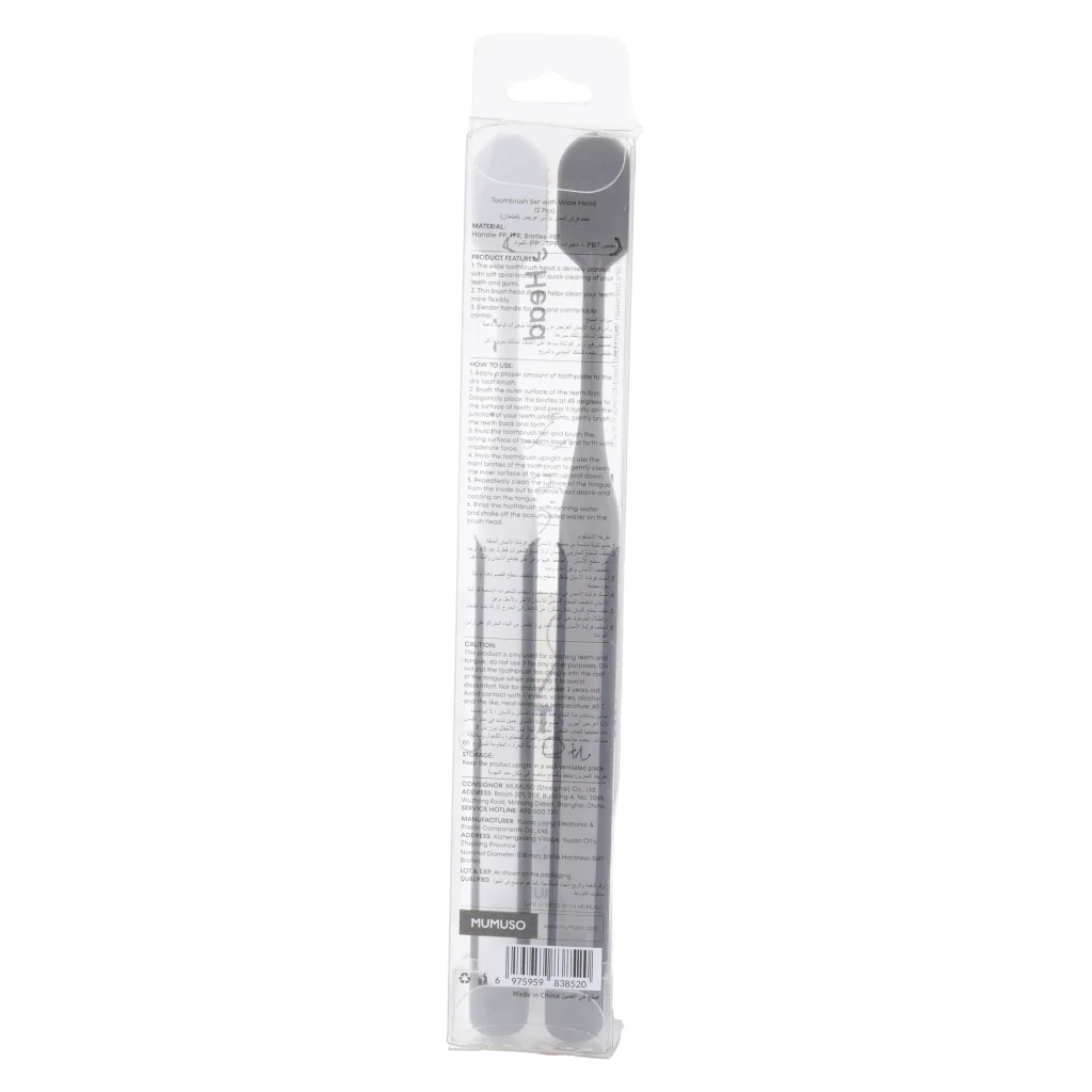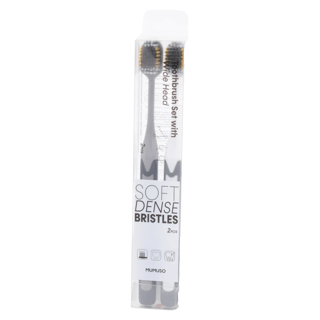 Zahnbürsten-Set mit breitem Bürstenkopf und weichen Borsten (Schwarz/Grau)