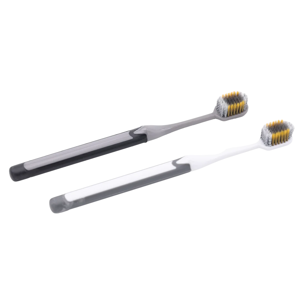 - Zahnbürsten-Set mit breitem Bürstenkopf und weichen Borsten (Schwarz/Grau)
